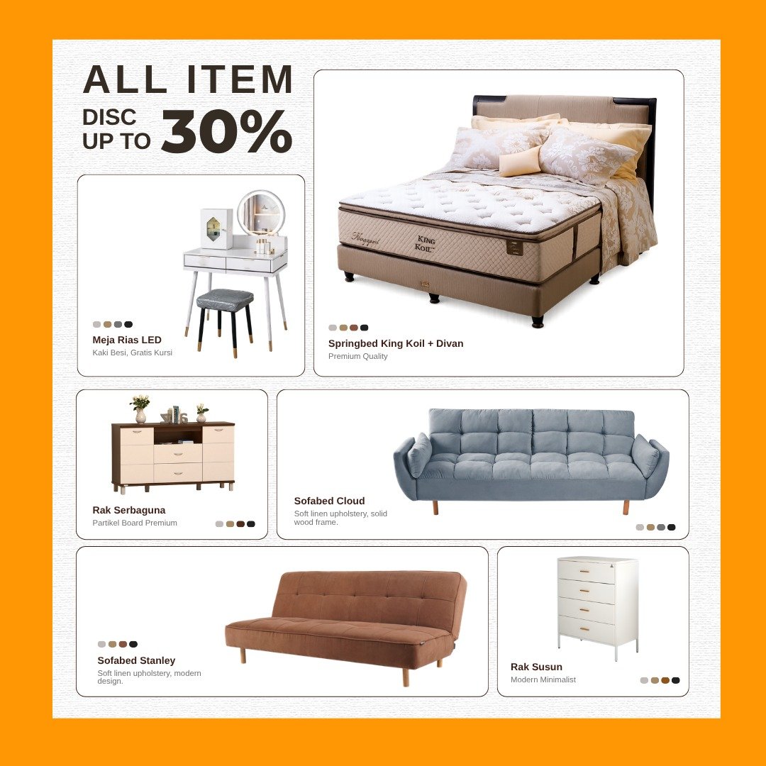 Dari kasur dan spring bed hingga berbagai mebel penunjang rumah, Sahabat Mebel menyediakan pilihan lengkap dengan model dan ukuran yang beragam sesuai kebutuhan Anda.